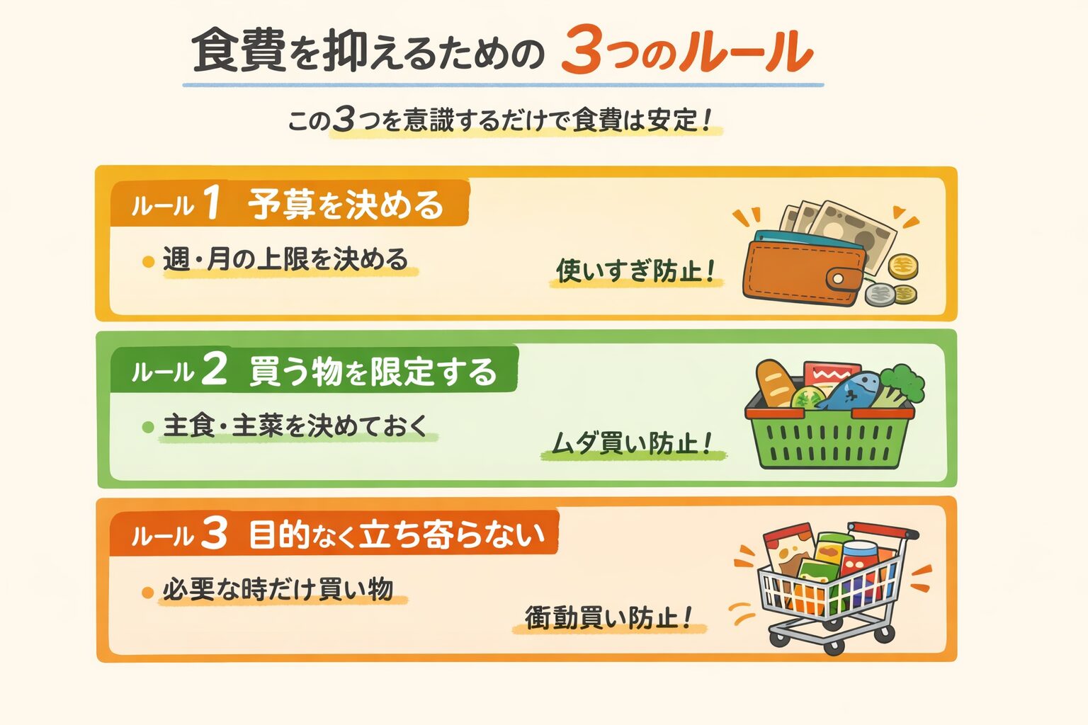 この3つがそろうだけで、まとめ買いでも毎日買いでも、食費は自然と安定しやすくなります。